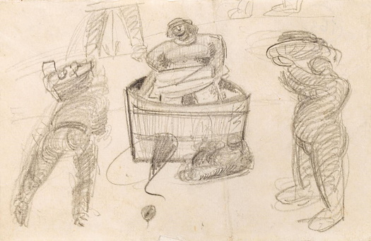 This pencil 5” x 7” pencil drawing has been titled In the Tub, circa 1935-1937.