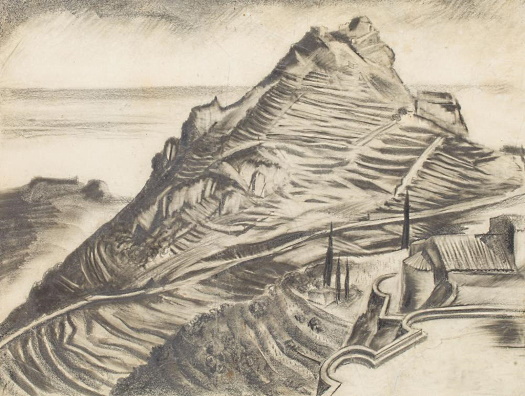 Panorama of Castel Molo, sanguine on paper, approx. 13” x 19”, ca. 1930. Signed in pencil at lower right: CASTEL MOLO | BOLESŁAW CYBIS