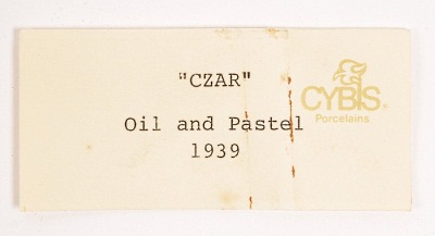 This drawing, described by Kamelot in a June 2013 auction lot as oil and pastel on paper, is 23” x 18”. It was sold with a Cybis studio paper tag affixed to the back, titling it “Czar.” Clearly, this was an item that the studio had sold directly to someone, probably after 1990 when they began selling various legacy items to visitors. This work is signed in pencil B Cybis 1939 at the lower right corner. A far better title for this drawing would be Pana (a male of the nobility.)