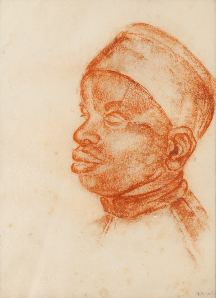 Portrait of a Negro Boy in a Fez, sanguine on paper, approx. 12” x 9”, ca. 1930, noted