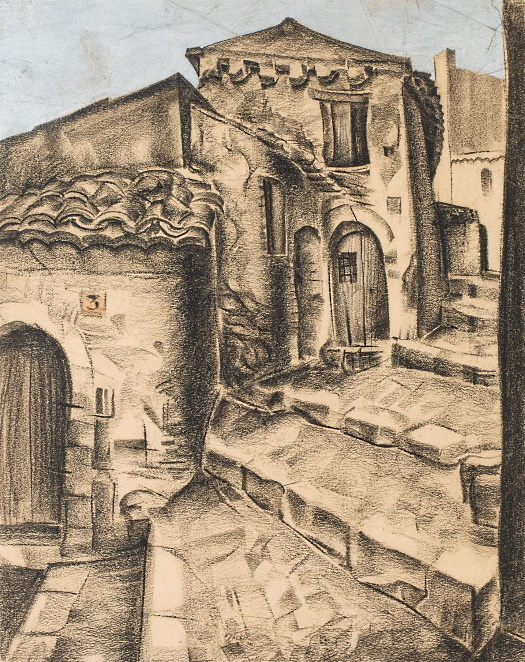 Stairs in Castel Molo, 1930, charcoal, mixed media on paper, 17.5” x 15”. Castel Molo is a village in the mountains of Sicily, roughly between Palermo and Messina. The road leading up to the old Saracen castle at the peak is comprised of more than 600 steps! I wonder how far up Boleslaw was when he stopped to sketch this?