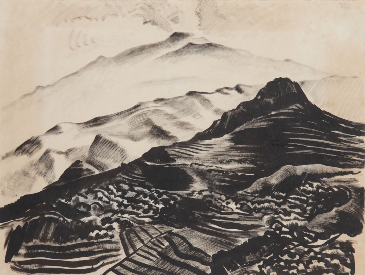 Italian landscape, 1930, charcoal on paper, 15” x 19”.