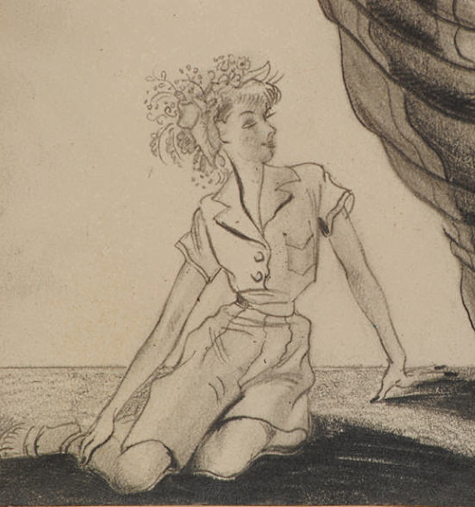 Far fewer circa-1940s drawings by Boleslaw Cybis have been found, no doubt because he was busily engaged in settling into his new life in America. Only one item shown below is actually dated as that decade, although several have been attributed (by outside sources) to that timeframe.
