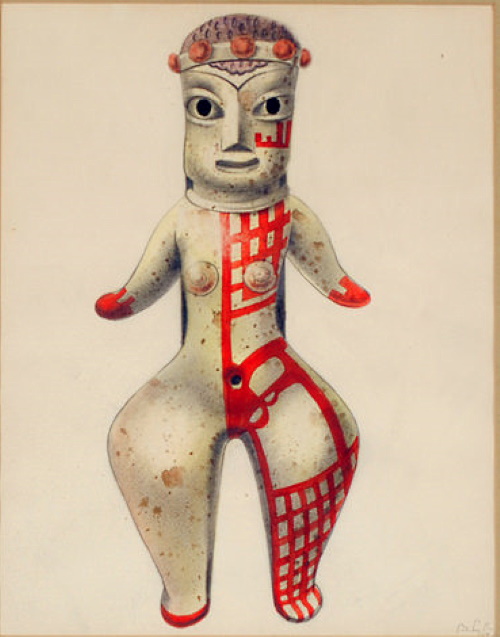 This fourth drawing in the same size and identical framing as the foregoing was described by the auctioneer as a “talisman doll” but it could also be called a Female Fetish.