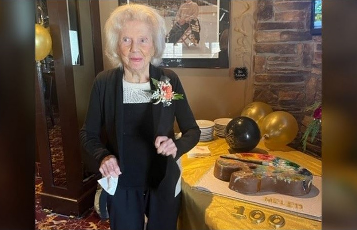 Helen Granger Young passed away on April 7, 2023. This photo was taken on the occasion of her 100th birthday party in November 2022. Photo courtesy of Debra Jonassen-Young.