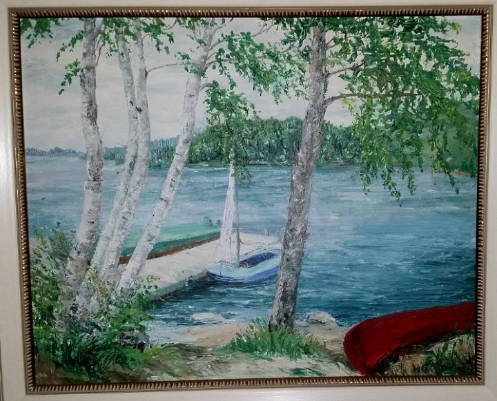 It has been much harder to find examples of paintings or drawings. A helpful Archive reader sent a photo of a painting that Mrs. Young did as a thank-you gift for his family after spending a summer vacation at their lakeside cottage.