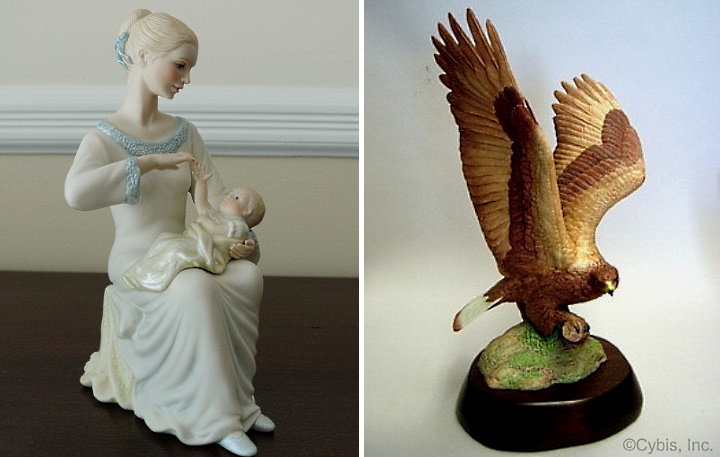 The private-commission pieces are trickier, because there probably aren’t any prior sales to compare them to if one does appear. They might well also be “genre” subjects: Who but a golf aficionado would likely be interested in a porcelain reproduction of the Ryder Cup? How many people do you know who would want a porcelain Rolls-Royce ‘Flying Lady’? In this way the private commissions are somewhat like the North American Indian pieces, i.e., very much a niche item. It will be the subject that ‘sells’ a private-commission piece, not the Cybis name nor its originally-restricted distribution. They are the ultimate market-value toss-up!