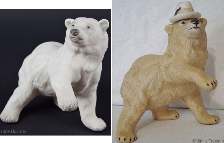 The child bust at left is the normal open edition Eskimo Child ‘Snow Bunting’ which was made from 1972 to 1981. The example on the right is the late-1970s REP called Nanuq, Little Polar Bear and was a numbered run of 200.