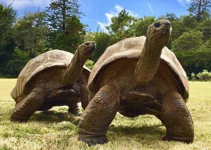Here are two actual giant tortoises (Aldabrachelys gigantea hololissa) from the Seychelles Islands. You can see that the shape and posture of their legs matches the Cybis piece almost exactly. The tortoise on the left is named Jonathan and he is the world’s oldest tortoise – he will be 190 this year, and is also the oldest land animal alive. He now lives on the island of St. Helena; I hope he makes it to 200, don’t you?