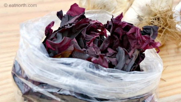 Believe it or not, there actually is a purple seaweed! Purple dulse (Palmaria palmata) grows in wide ribbons just like the Cybis piece displays. Nicknamed ‘the bacon of the sea’, it is found growing on rocks in the North Atlantic and Northwest Pacific oceans, in color ranging from dark red to dark purple. It is sold commercially in both fresh and dehydrated forms.