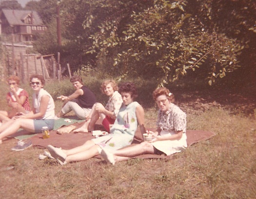 During the summer months, employees often ate their lunch picnic-style in one of the Church Street building rear yards. This photo from the 1960s shows, from left to right: Elsie Matelski, painter; Mildred Cook, designer; Dorothy Kaminski, decorator; Loretta Szutarski/Buchanan, painter; Lorraine (surname unknown); and Belle Boehm, painter.