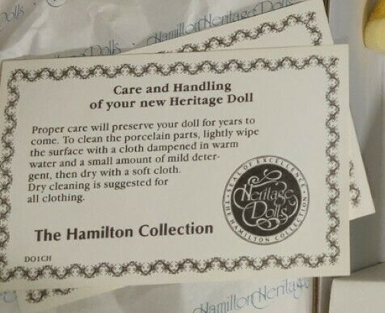 This generic ‘care’ card was also included with all of Hamilton’s porcelain-component dolls.