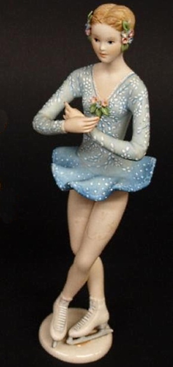 A Star is Born was the first of the trio of ice skaters that Cybis released, starting in 1984. She is 10” high and was a limited edition of 750 that sold for $625. The two subsequent skaters, issued in 1985 and 1986, can be seen in this post.