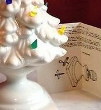 Both tree designs were produced in green and in white, and were lit from within by a 25-watt bulb. Extra multicolored tree “bulb” inserts were included. Both trees were also produced in two sizes: Small and Large. The small trees are between 12” and 13” high overall (including the base) while the large trees are between 18” and 19” and weigh approximately 6 lbs.