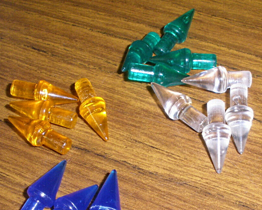 The plastic inserts in primary colors have sharply pointed tips which contrast well with the soft pillowy style of the tree.