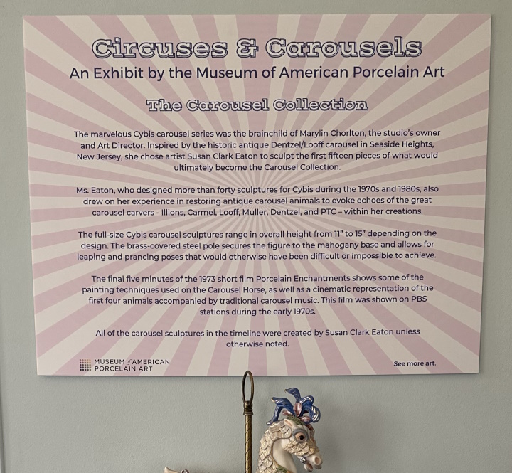 A poster explains the history behind the Cybis Carousel Collection. The Archive now contains a profile of Susan Clark Eaton.