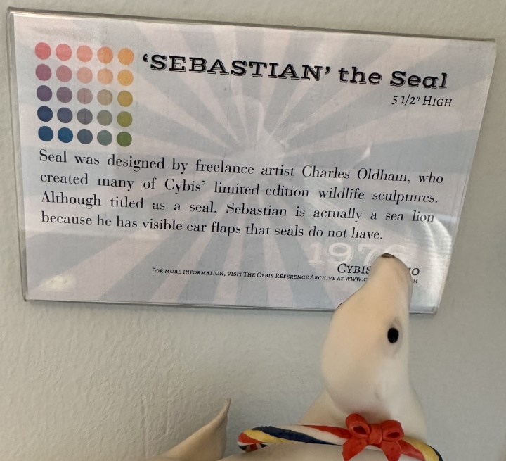 Although sculptor Charles (‘Chuck’) Oldham specifically created Sebastian as a sea lion, the Cybis studio erroneously titled him as a seal. Seals do not have the ear flaps that are clearly evident on this piece.
