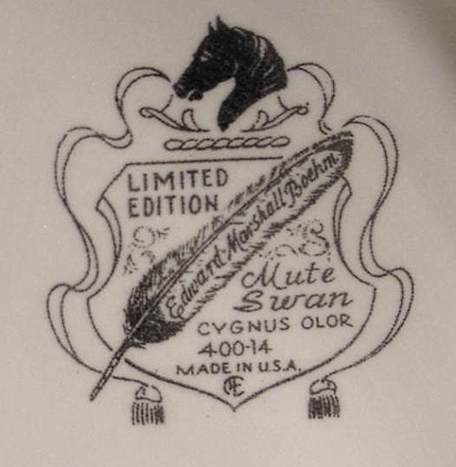 Boehm’s backstamps were entirely composed of decals except for the individual sculpture number which was hand applied. The example above is not a limited edition and so no sculpture number was needed.