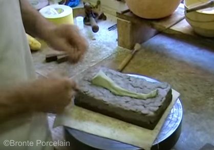 Because each casting results in a minute layer of porcelain adhering to the inside of the Working Mold after the porcelain piece shrinks away, these molds can only be used a few times before the fine detailing in them starts to become blurry. A dozen castings is about the limit for a Working Mold but if there is a lot of detail it may not even last that long. The ‘blurred’ Working Mold is thrown away and a new one created from the hydrostone Case Mold. Because this is a much harder material, the fine detailing on its surface is never lost.