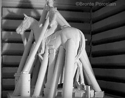 These photos of a Lynn Klockner Brown sculpture, Pony and Children, in its model stage shows the number of supports that may be needed for a large piece such as this.