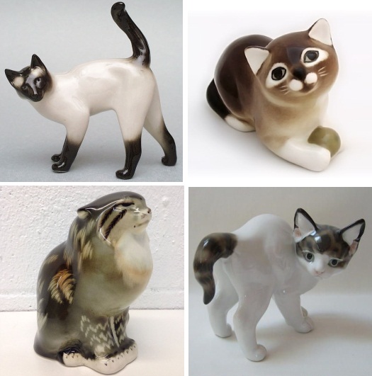 A glazed figure made from a simple mold and with no delicate decorations, like these Lomonosov porcelain cats, can be simply wiped off with a clean cloth or a Swiffer.
