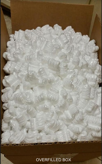Here are photos showing some “Goldilocks” boxes: one underfilled, one overfilled, and a third which is just right!