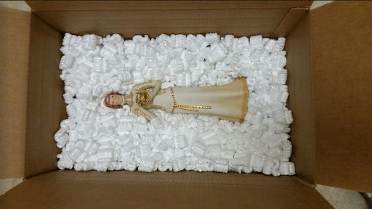 “Cut up a Styrofoam egg carton and place one section of the container around each protruding area of the figurine. Use painter’s tape to attach the egg carton cups together….Wrap each figurine in a layer of bubble wrap.” [a layer of bubble wrap? Meaning, as in, just one? And the likelihood of the wrapping procedure dislodging any such egg-carton-bra-cup contraption is probably around 90%]