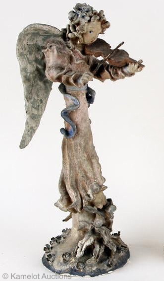 This Mandolinist example was sold on eBay. She is not dated, and the signature and monogram were applied with brown paint. However, the existence of these two angels makes it probable that there were other such 1940 or 1941 M.B. Cybis items made at that very first studio at the Steinway Mansion in New York. The problem is that papka is incredibly fragile and so the odds of them having survived 80+ years is very slim. :-(