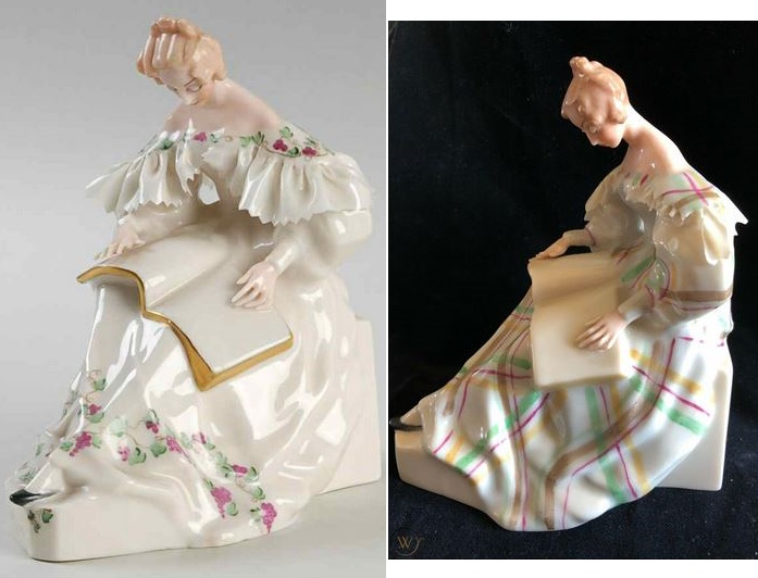 The Reader was a very popular figure, here shown in two very different colorways.