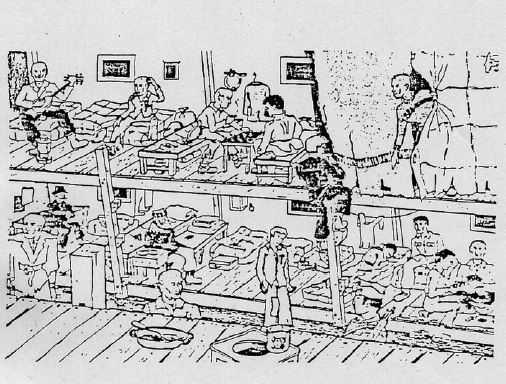 Background Information: The only toilet facilities for the prisoners were open trenches, with wooden slats across them. The men had to straddle the slats after standing in long lines waiting their turn.
