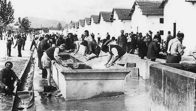 A photograph of prisoners at Miranda del Ebro during WWII.