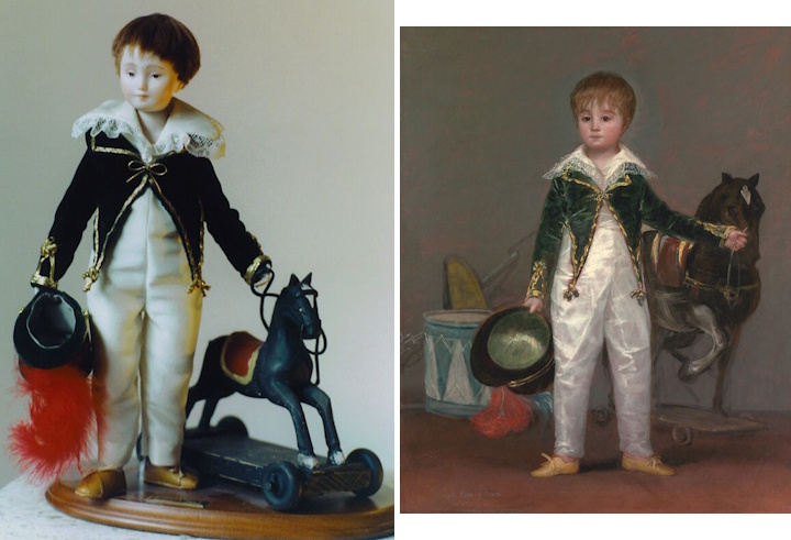 Portrait doll based on Goya’s early-1800s portrait of Jose Costa y Bonells, the young son of one of the artist’s major patrons. He was nicknamed ‘Pepito’, the name by which the portrait is known; it’s in the Metropolitan Museum of Art.