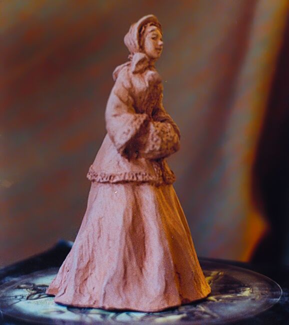 Anthony Trollope, 16.5” tall. Trollope was Gertrude’s favorite author, and the creation of a sculpture honoring him was the impetus that led to the birth of the Victorian Legacy enterprise. Princeton University has the #4 sculpture of the edition of 250, in the holdings of their Firestone Library. The fourth photo shows Gertrude Fass’ signature (G J Fass) on the back of the base section.