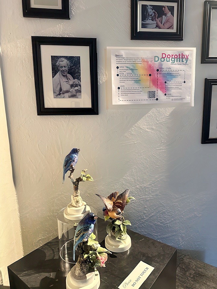 The artist featured at the lower left of this wall is Dorothy Doughty. Although Dorothy never lived or worked in the United States, her art not only firmly established the concept of ‘limited edition’ art porcelain worldwide, but her bird and flower sculptures set the standard for all other artists to follow….way back in the 1930s, before any American porcelain art studio existed or was even thought of.