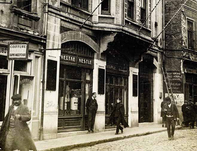 A typical Nestle store in Constantinople at that time. Note the tri-lingual signage; this was a very cosmopolitan, international city.