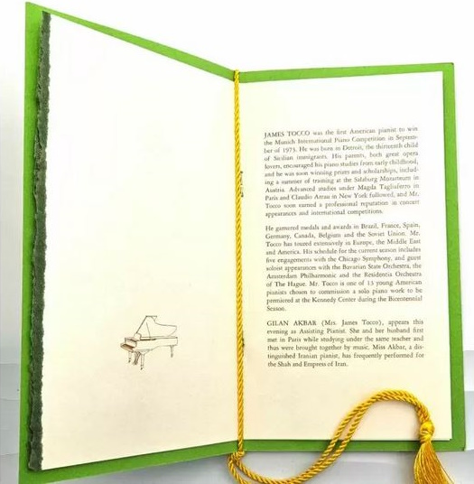 listen to the piano performance by Mr. Tocco accompanied by his wife, Gilan Akbar, from 11 to 11:40, after which