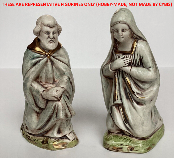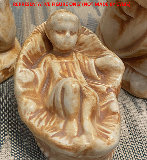 The newfound 1950s price list answered that question: It was part of the very FIRST nativity series that the Cybis studio produced. The list itself – which contains only religious subjects – contained no photos of the nativity pieces, although it did include a few other religious items. However, the sizes and descriptions of the Cybis pieces match those contained in the Holland Mold Company set. Until or unless more of the Cybis pieces turn up online, the best I can do is to offer photos of hobby versions that were cast from the same Holland molds that Cybis used.