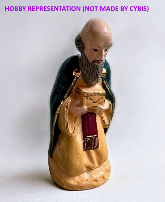 The recent discovery of part of a circa-1950s Cybis wholesale price list contained a series of single Nativity figures that are entirely different from the 1950s Nativity Murals shown in the studio’s published catalogs. This did not come as a complete surprise to me, though, because in 2021 I came across an unfamiliar figurine marked Cybis that did not match any of the molds in the murals. I wrote about it in this post and showed that the figure (one of the Three Kings/Magi) matched a Holland Mold hobbyist set found online…but did the lone Cybis-marked king indicate an actual retail offering, or was it merely a sample or test piece? It was the only such item I’d ever seen during more than a decade of intensive Cybis research.