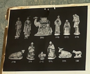 Update, July 2025: This portion (about 25%) of a phone pic of one of the pages associated with the above list, shows the Nativity figures together. Although I tried to globally upscale the original 600-pixel-wide image, it introduced far too many AI artifacts and so this is only a 1.1x upscale. [page photo courtesy of a helpful Archive reader]