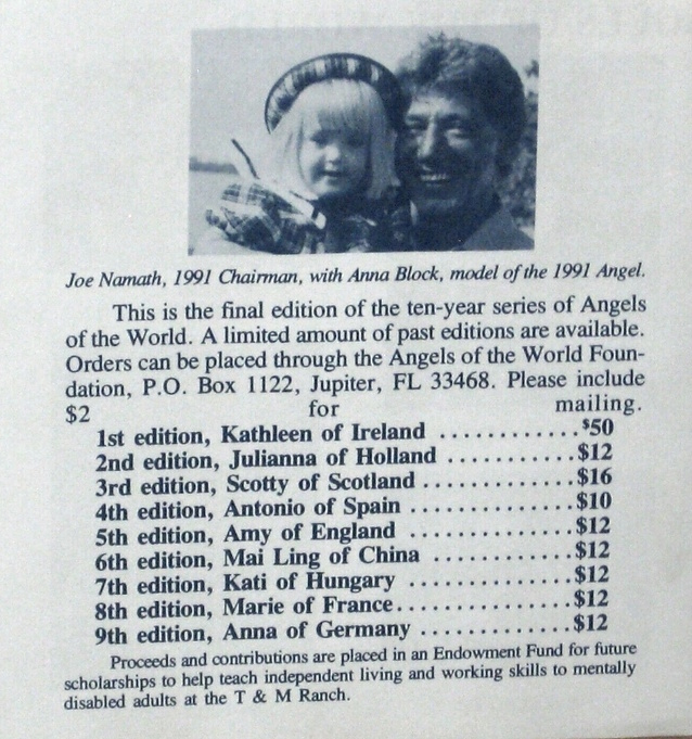 The Angels of the World ornament series was designed by Ispanky but manufactured at the T&M Ranch in Indiantown, Florida. Each ornament features a child from a different country.