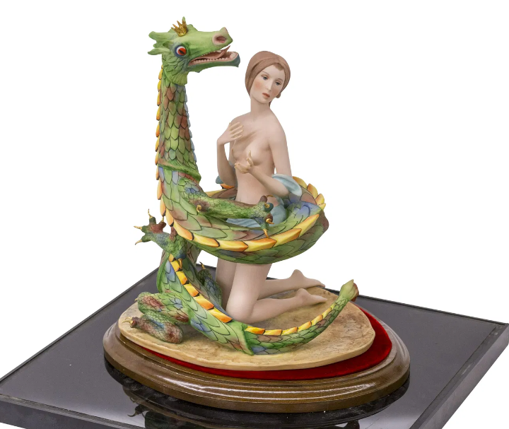 In this Beauty and the Beast, the dragon’s crown and all of his claws are gold. It was an edition of 75 priced at $4500. (The square stand in this photo did not come with the sculpture.)