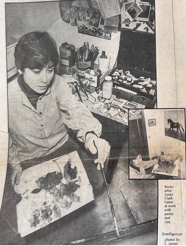 In 1973, twenty-year-old Susan Clark married fellow-artist Charles Eaton. The couple created a home on Aquetong Road in the artist community of New Hope, PA where they had space to indulge their love of horses. Their house, in fact, was built in the shape of a horseshoe with one side being residential and the other serving as a stable. In another of our emails, Sue described how