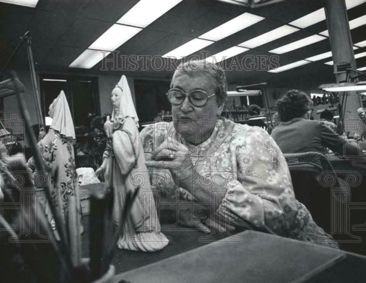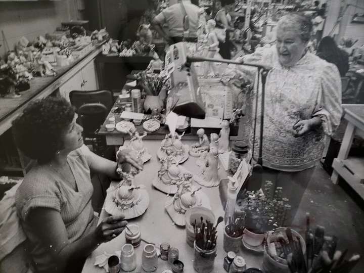 Ginny MacCotter helped create Cybis’ 40th Anniversary commemorative piece, “The Bride”, which depicts a Polish peasant girl on her wedding day. It is one of countless Cybis pieces she has worked on, none of which will ever bear her name. Now 70, she continues as a fulltime employee of Cybis.